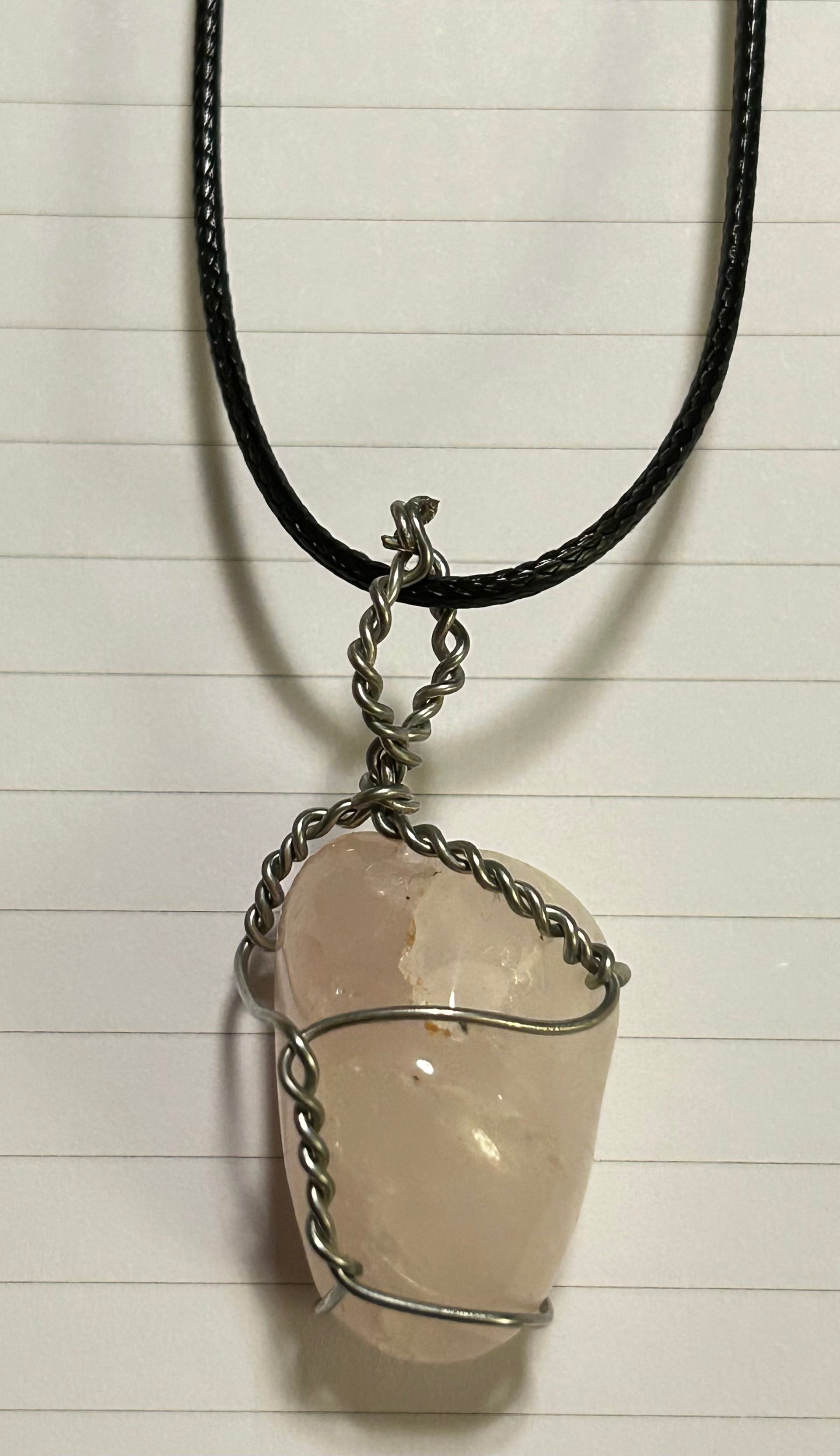 handmade wire-wrap necklace with rose quartz
